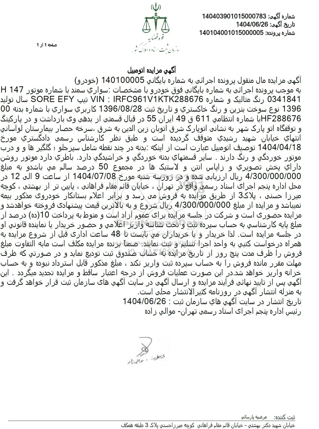 تاریخ مزایده : 1404.7.8 روز سه شنبه از ساعت 9 الی 12