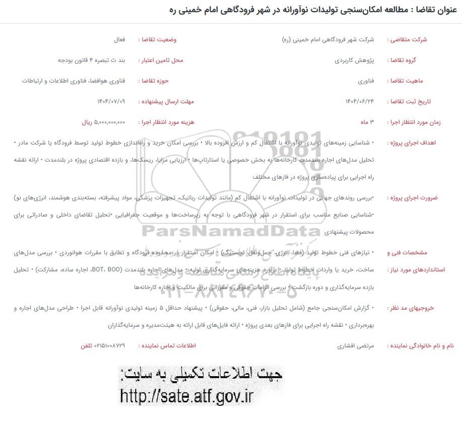 عنوان تقاضا : مطالعه امکان سنجی تولیدات نوآورانه در شهر فرودگاهی امام خمینی ره
