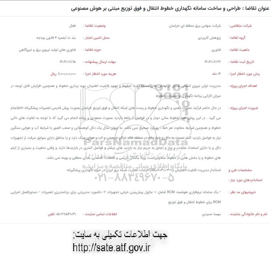 شرکت متقاضی : شرکت سهامی برق منطقه ای خراسان