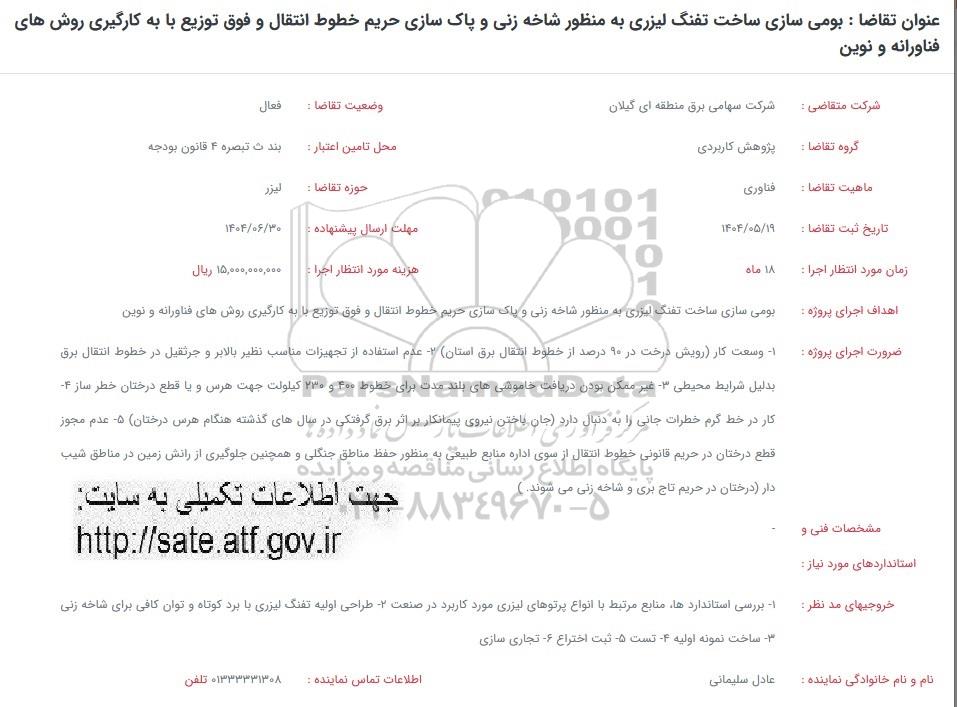 عنوان تقاضا : بومی سازی ساخت تفنگ لیزری به منظور شاخه زنی و پاک سازی حریم خطوط انتقال و فوق توزیع با به کارگیری روش های فناورانه و نوین