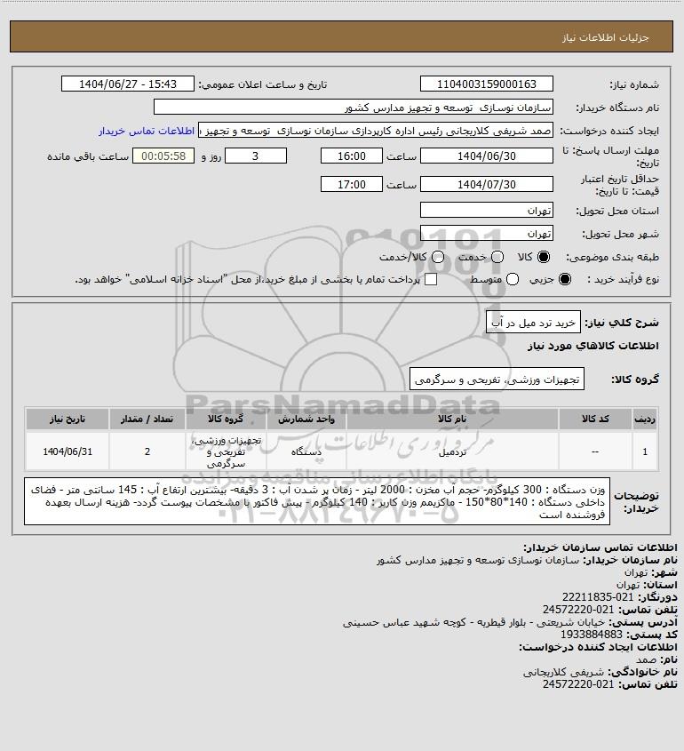 نام دستگاه خریدار:سازمان نوسازی توسعه و تجهیز مدارس کشور