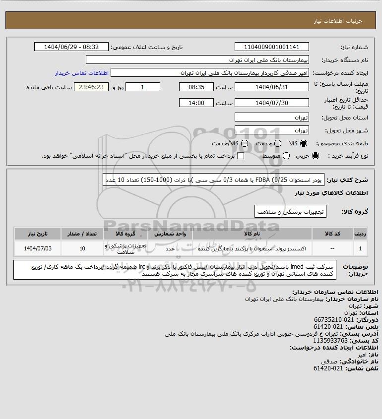 نام دستگاه خریدار:بیمارستان بانک ملی ایران تهران