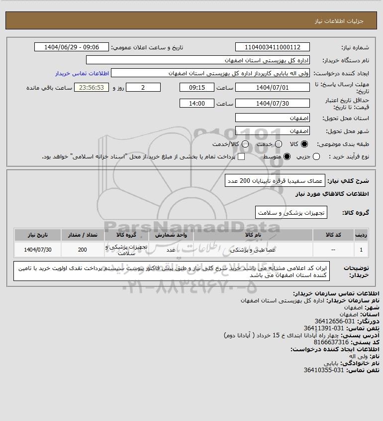 1 -- عصا طبی و پزشکی عدد تجهیزات پزشکی و سلامت 200 1404/07/30