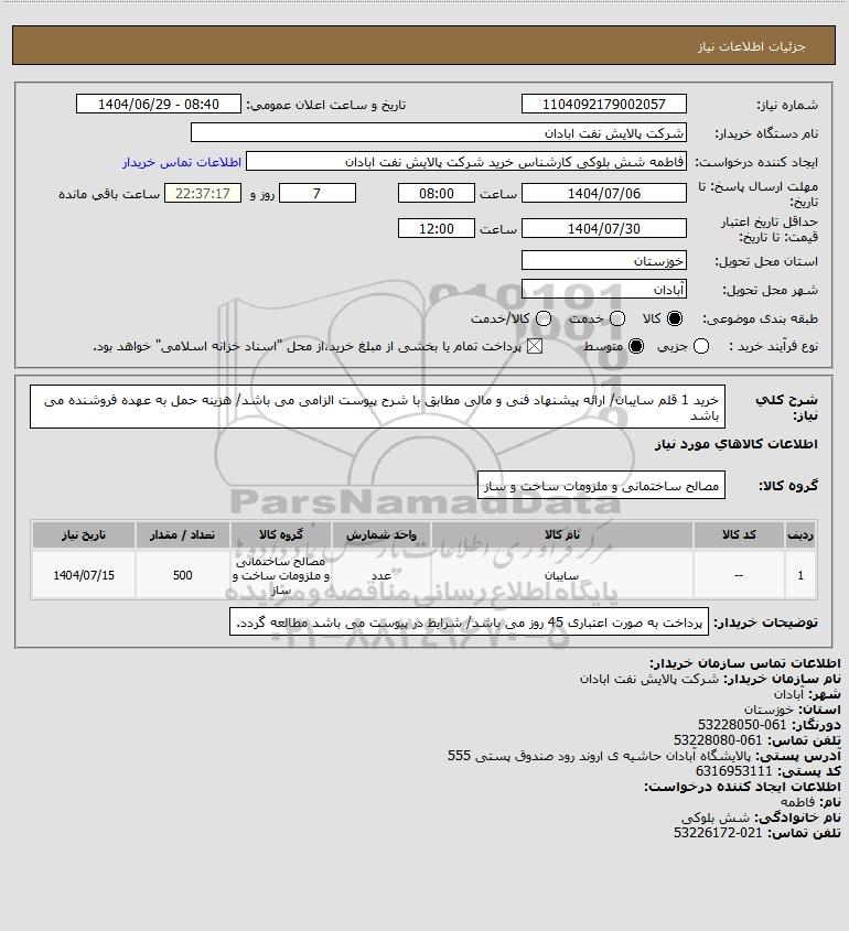 نام سازمان خریدار: شرکت پالایش نفت ابادان