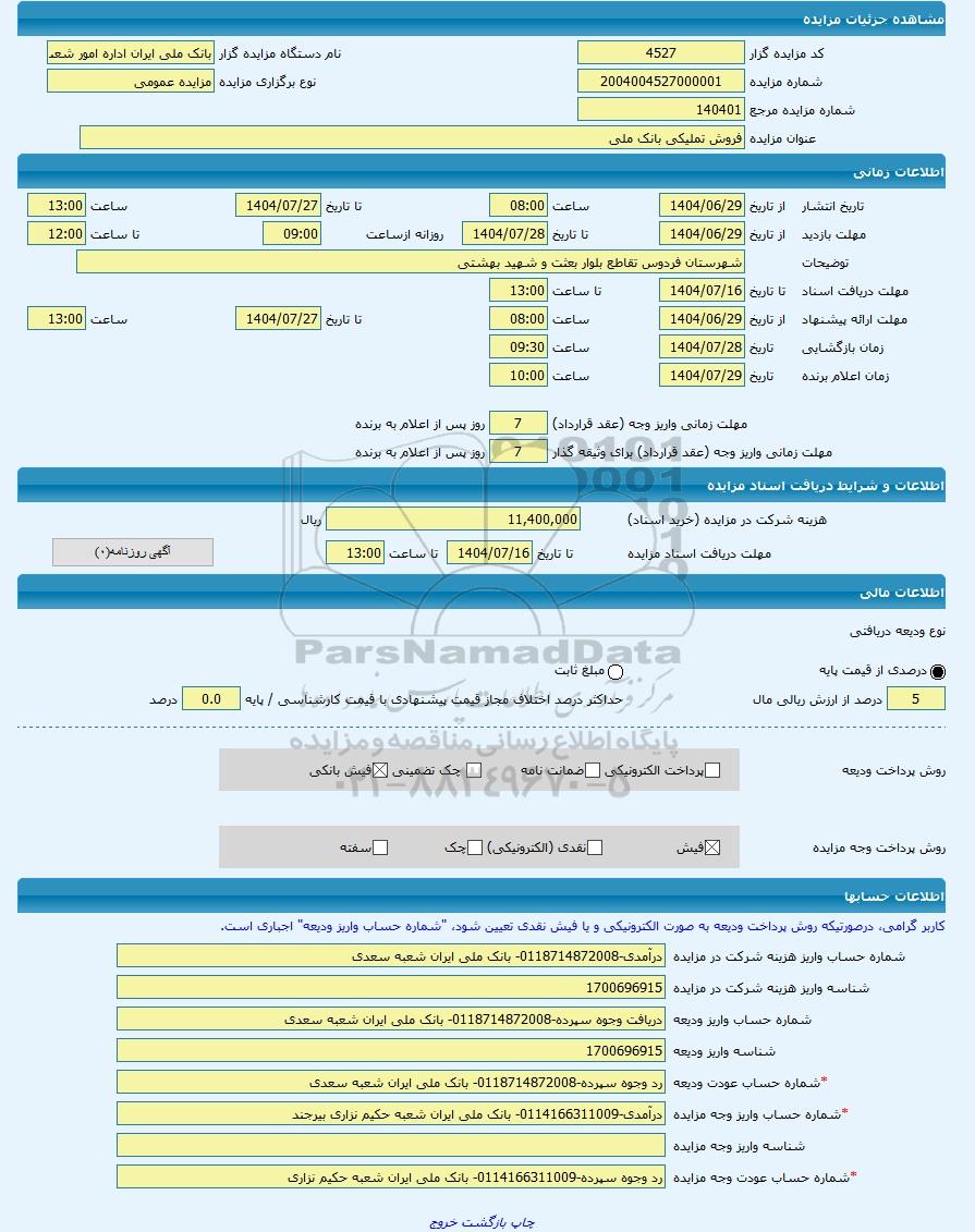 | شناسه واریز هزینه شرکت در مزایده | 1700696915 |