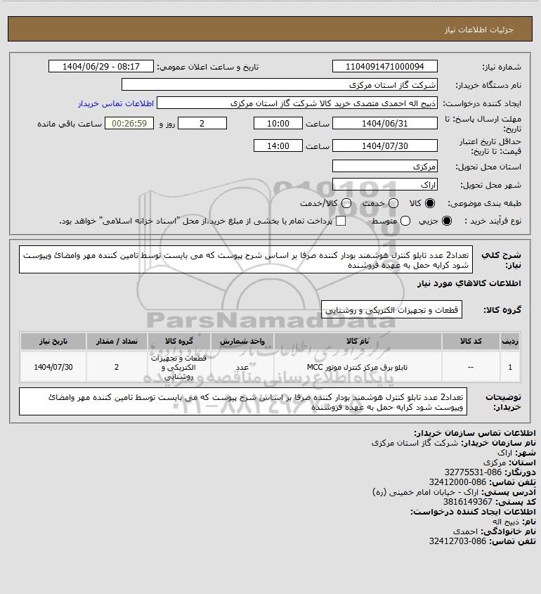 نام دستگاه خریدار:شرکت گاز استان مرکزی
