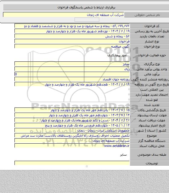 12 فراخوان تجدید مناقصه- اجرای آسفالت معابر سایت ... 9807844 1404/08/14 new not special not payed زنجان