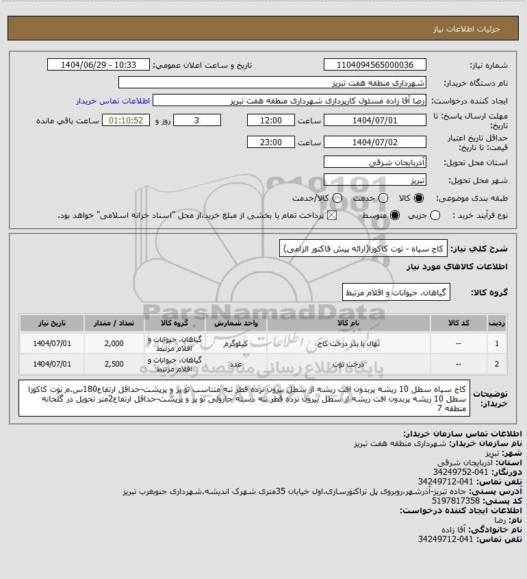 شرح کلی نیاز: کاج سیاه - توت کاکوزا(ارائه پیش فاکتور الزامی)