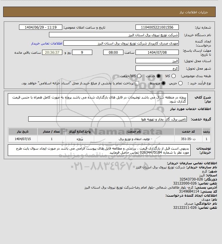 نام دستگاه خریدار:شرکت توزیع نیروی برق استان البرز