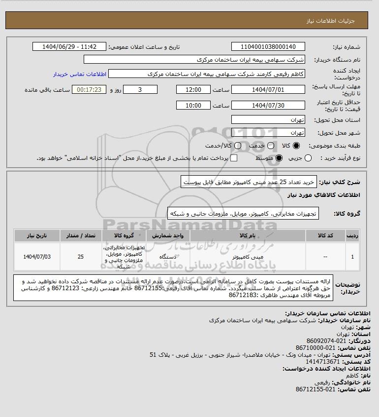 شرح کلی نیاز: خرید تعداد 25 عدد مینی کامپیوتر مطابق فایل پیوست