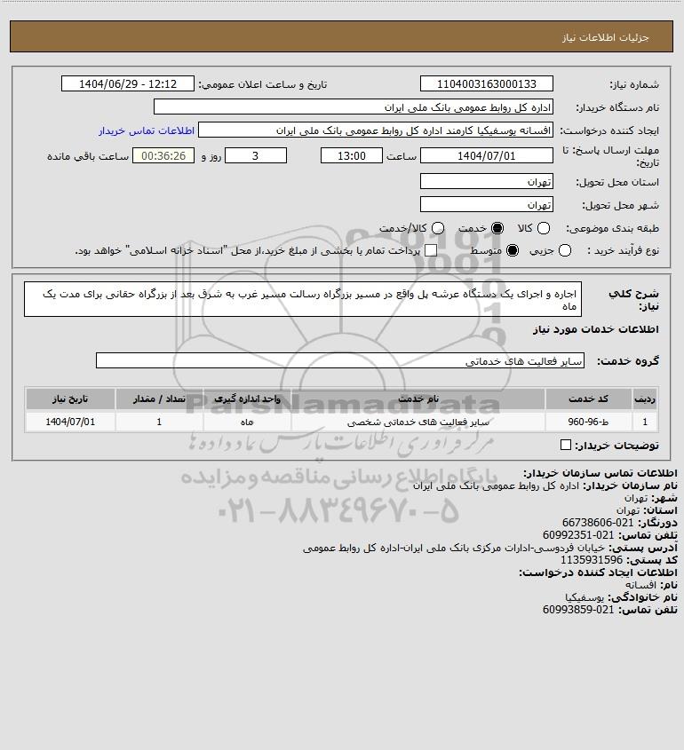 نام دستگاه خریدار:اداره کل روابط عمومی بانک ملی ایران