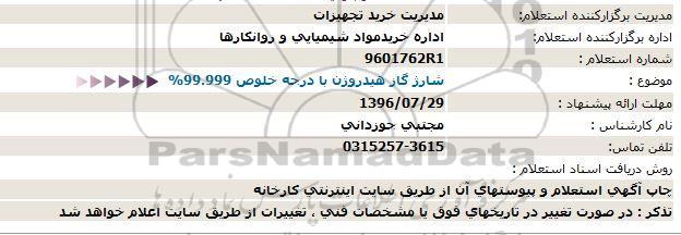 استعلام شارژ گاز هیدروژن با درجه خلوص 99.999%, استعلام , استعلام شارژ گاز هیدروژن با درجه خلوص 99.999%