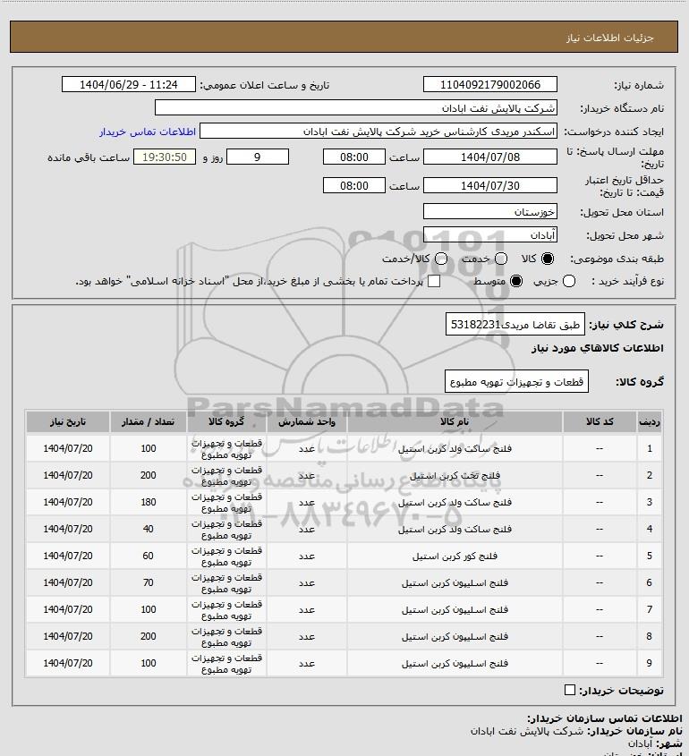 نام دستگاه خریدار:شرکت پالایش نفت ابادان