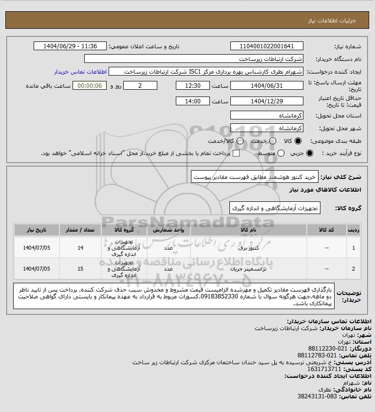 | 2 | -- | ترانسمیتر جریان | عدد | تجهیزات آزمایشگاهی و اندازه گیری | 15 | 1404/07/05 |