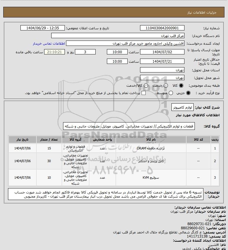 | 3 | -- | سوئیچ KVM | عدد | تجهیزات مخابراتی، کامپیوتر، موبایل، ملزومات جانبی و شبکه | 10 | 1404/07/06 |