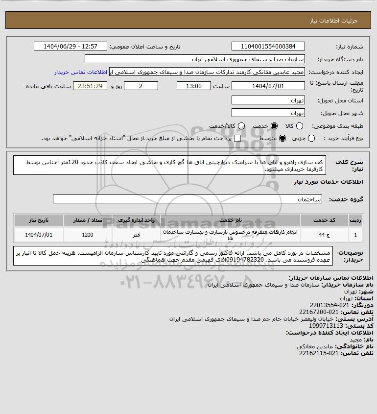 نام دستگاه خریدار:سازمان صدا و سیمای جمهوری اسلامی ایران