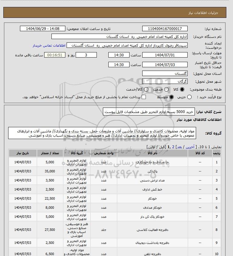 شرح کلی نیاز: خرید 5000 بسته لوازم التحریر طبق مشخصات فایل پیوست
