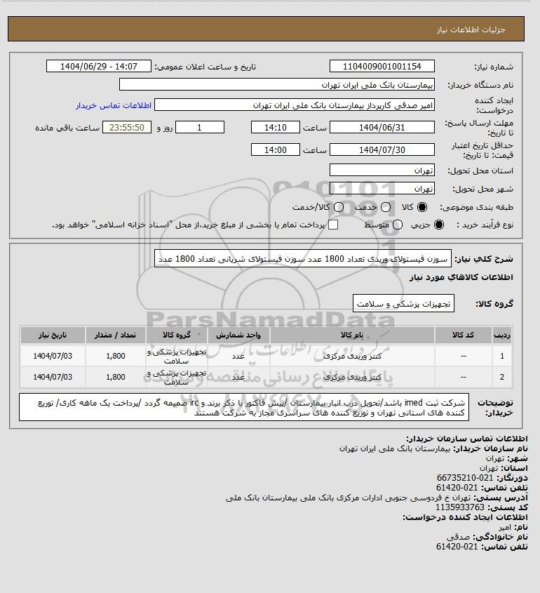 شرح کلی نیاز: سوزن فیستولای وریدی تعداد 1800 عدد