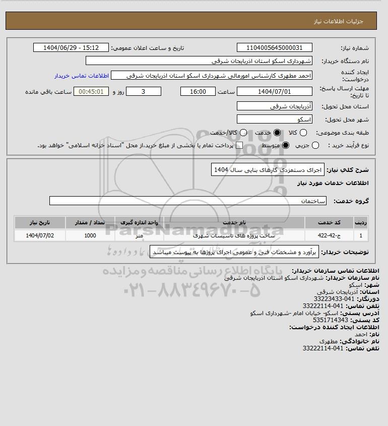 شرح کلی نیاز: اجرای دستمزدی کارهای بنایی سال 1404