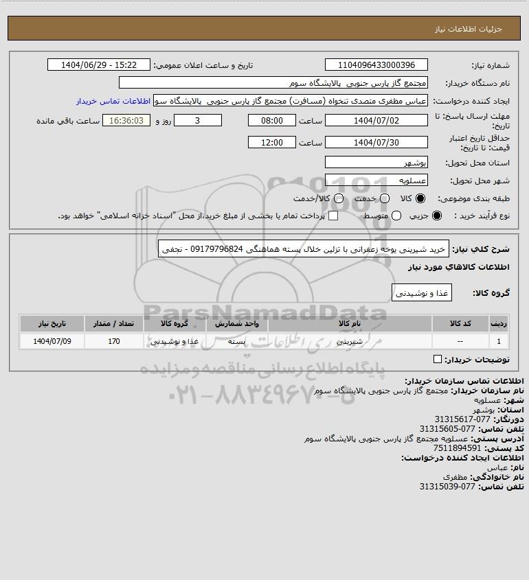 نام دستگاه خریدار:مجتمع گاز پارس جنوبی پالایشگاه سوم