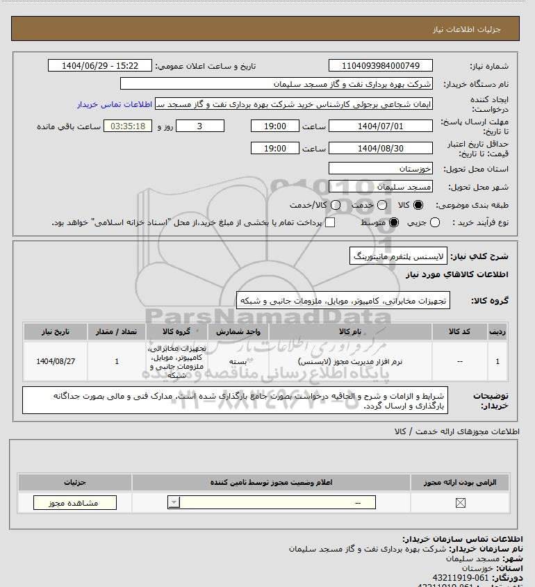 استعلام لایسنس پلتفرم مانیتورینگ, استعلام لایسنس پلتفرم مانیتورینگ
