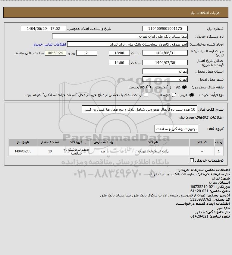 نام دستگاه خریدار:بیمارستان بانک ملی ایران تهران