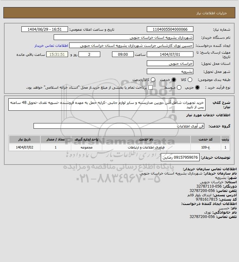 نام دستگاه خریدار:شهرداری بشرویه استان خراسان جنوبی