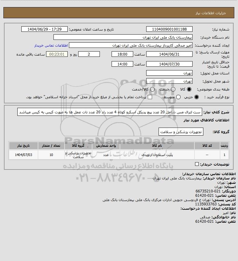 نام سازمان خریدار: بیمارستان بانک ملی ایران تهران