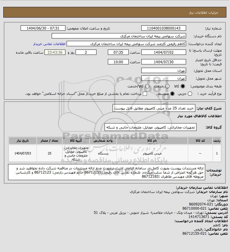 شرح کلی نیاز: خرید تعداد 25 عدد مینی کامپیوتر مطابق فایل پیوست