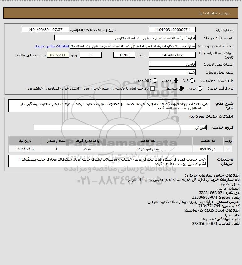 نام دستگاه خریدار:اداره کل کمیته امداد امام خمینی ره استان فارس
