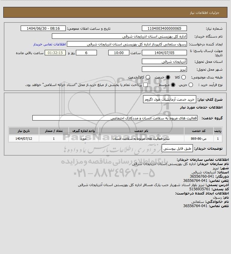 شرح کلی نیاز: خرید خدمت آزمایشات هول اگزوم