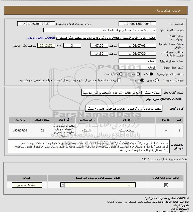 نام دستگاه خریدار:مدیریت شعب بانک مسکن در استان کرمان