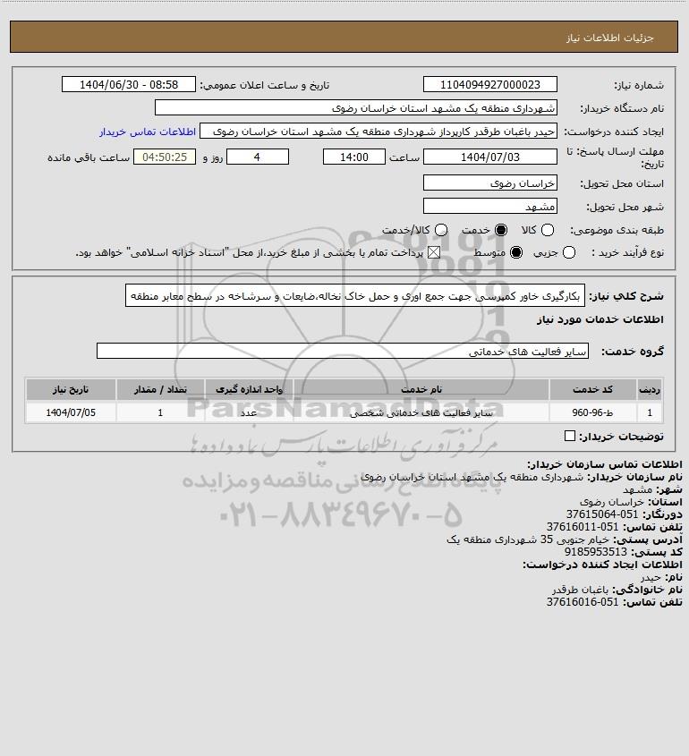 نام سازمان خریدار: شهرداری منطقه یک مشهد استان خراسان رضوی