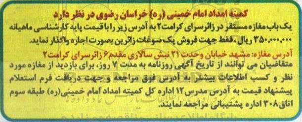 متقاضیان می توانند از تاریخ آگهی روزنامه به مدت 7 روز برای بازدید از مغازه مورد نظر و کسب اطلاعات بیشتر به آدرس فوق مراجعه و جهت دریافت فرم استعلام پیشنهاد قیمت به آدرس مدرس 12 اداره کل کمیته امداد امام خمینی (ره) طبقه سوم اتاق 308 اداره پشتیبانی مراجعه نمایند.