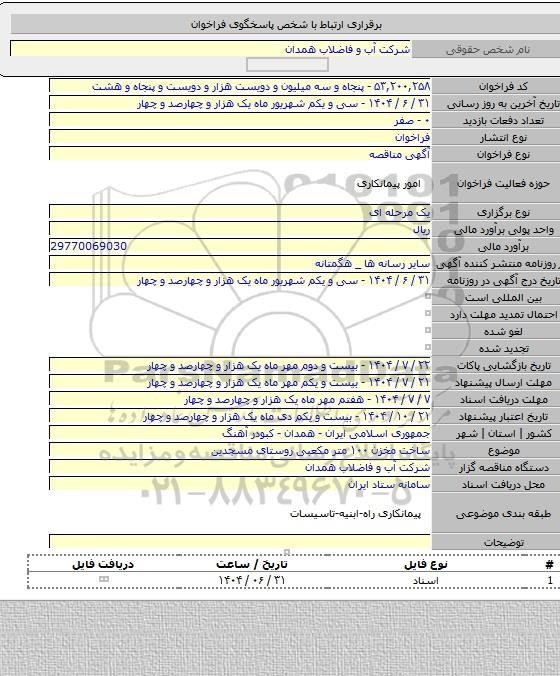 این مناقصه در استان همدان با دسته بندی های صنفی و تخصصی پیمانکاری آب و فاضلاب, مخازن برگزار میشود.