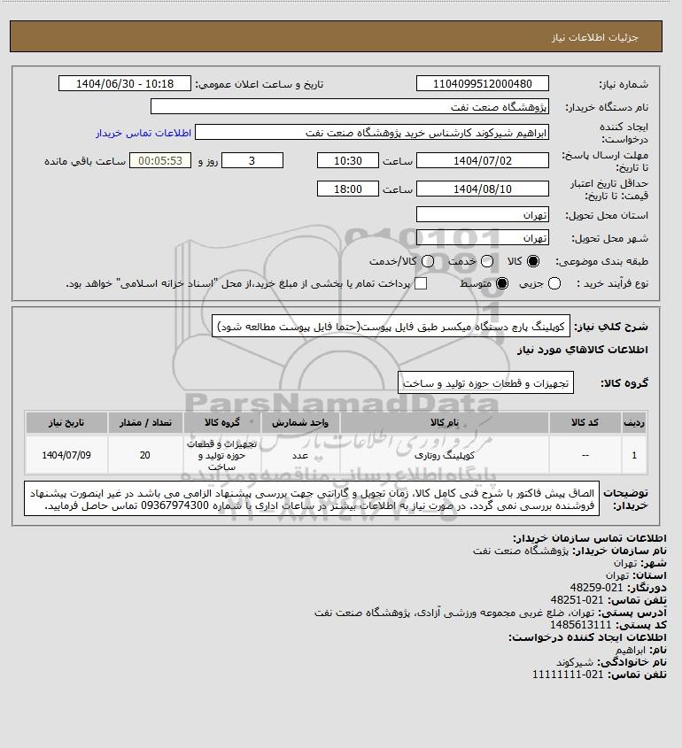 نام دستگاه خریدار:پژوهشگاه صنعت نفت