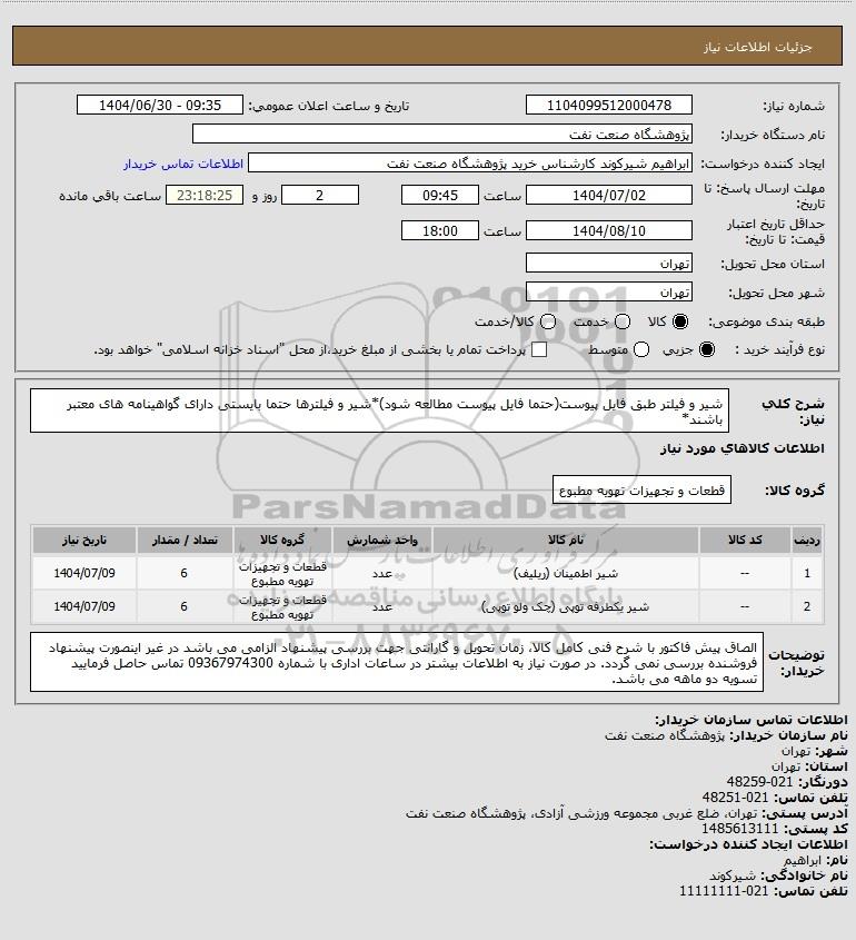 نام دستگاه خریدار:پژوهشگاه صنعت نفت