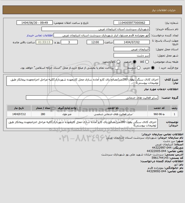 نام دستگاه خریدار:شهرداری سردشت استان اذربایجان غربی