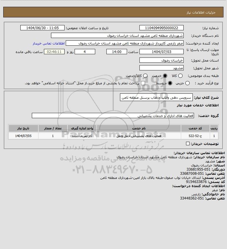 نام دستگاه خریدار:شهرداری منطقه ثامن مشهد استان خراسان رضوی