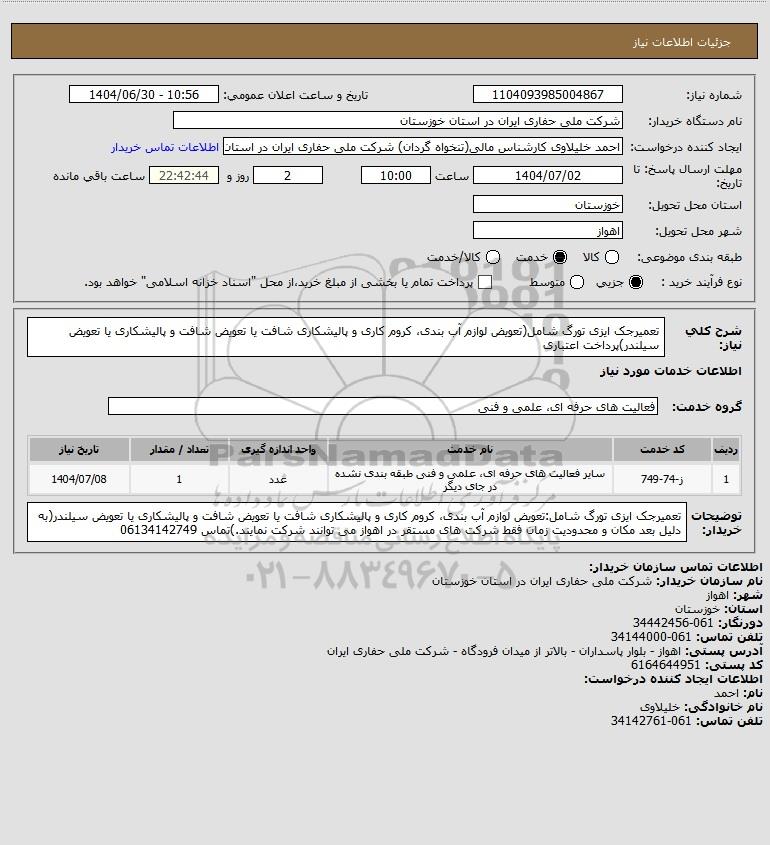 نام دستگاه خریدار:شرکت ملی حفاری ایران در استان خوزستان