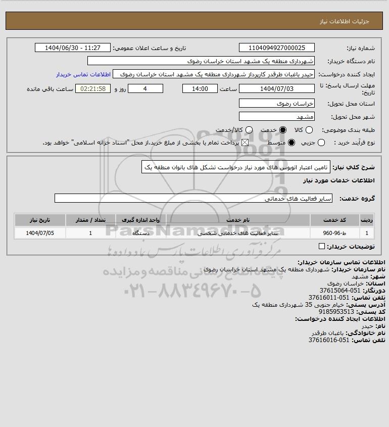 نام سازمان خریدار: شهرداری منطقه یک مشهد استان خراسان رضوی
