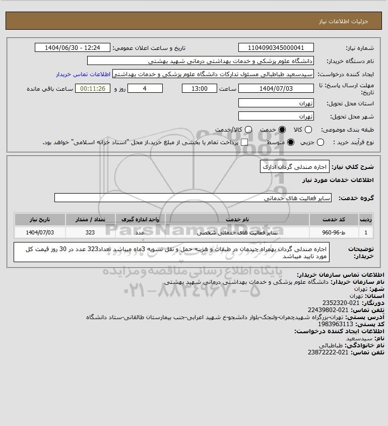نام دستگاه خریدار:دانشگاه علوم پزشکی و خدمات بهداشتی درمانی شهید بهشتی