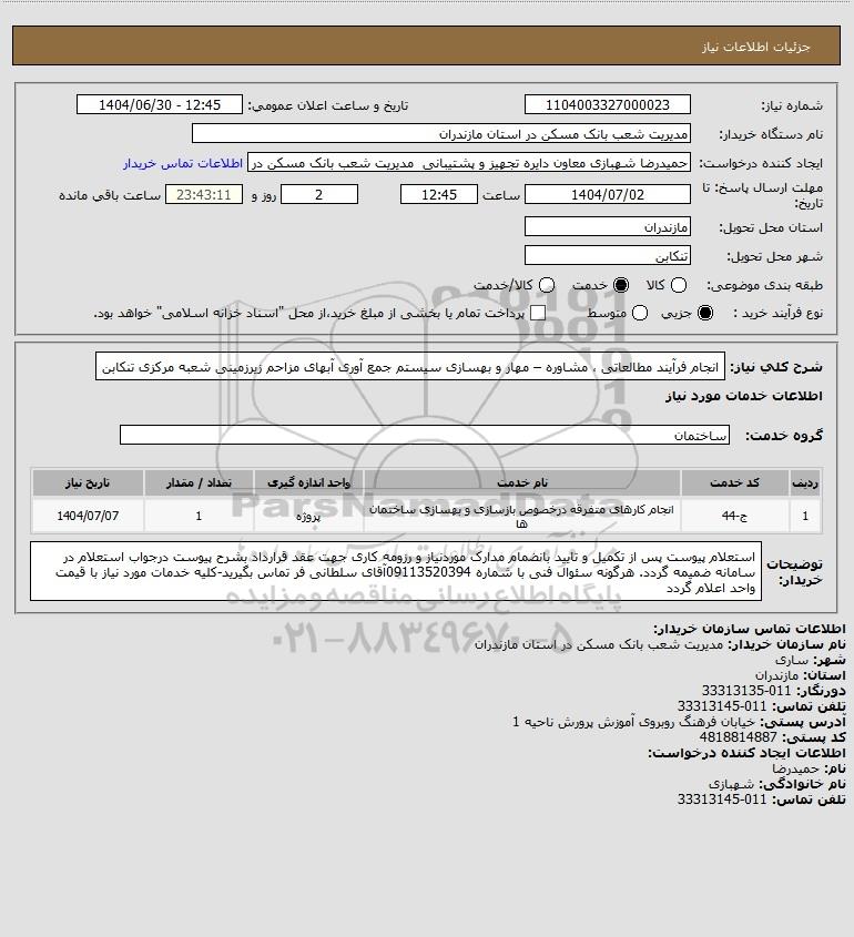 نام دستگاه خریدار:مدیریت شعب بانک مسکن در استان مازندران