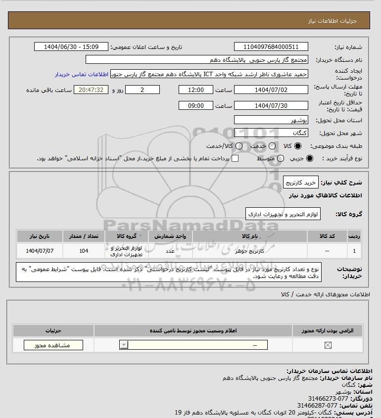 شرح کلی نیاز: خرید کارتریج