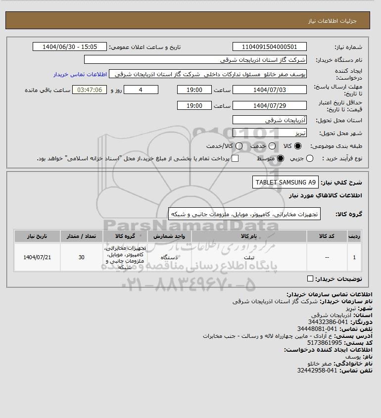 شرح کلی نیاز: TABLET SAMSUNG A9