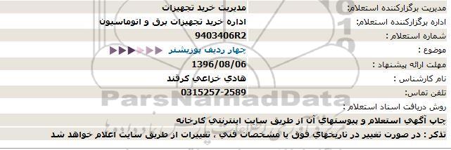 اداره برگزارکننده استعلام: اداره خرید تجهیزات برق و اتوماسیون