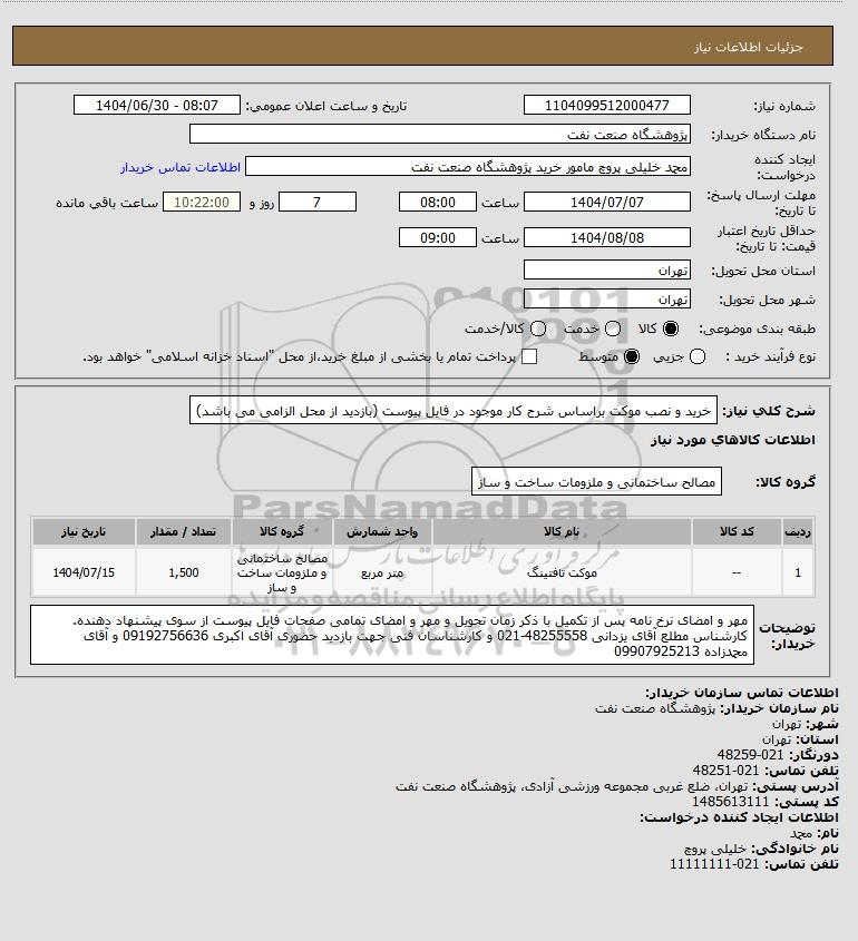 نام دستگاه خریدار:پژوهشگاه صنعت نفت