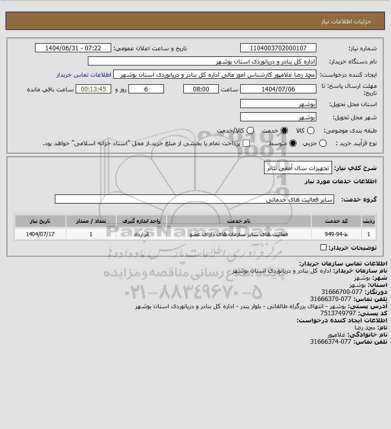 نام دستگاه خریدار:اداره کل بنادر و دریانوردی استان بوشهر