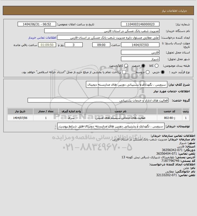 نام دستگاه خریدار:مدیریت شعب بانک مسکن در استان فارس