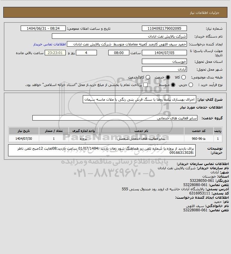 شرح کلی نیاز: اجرای بهسازی پیاده روها با سنگ فرش بتنی رنگی با ملات ماسه سیمان